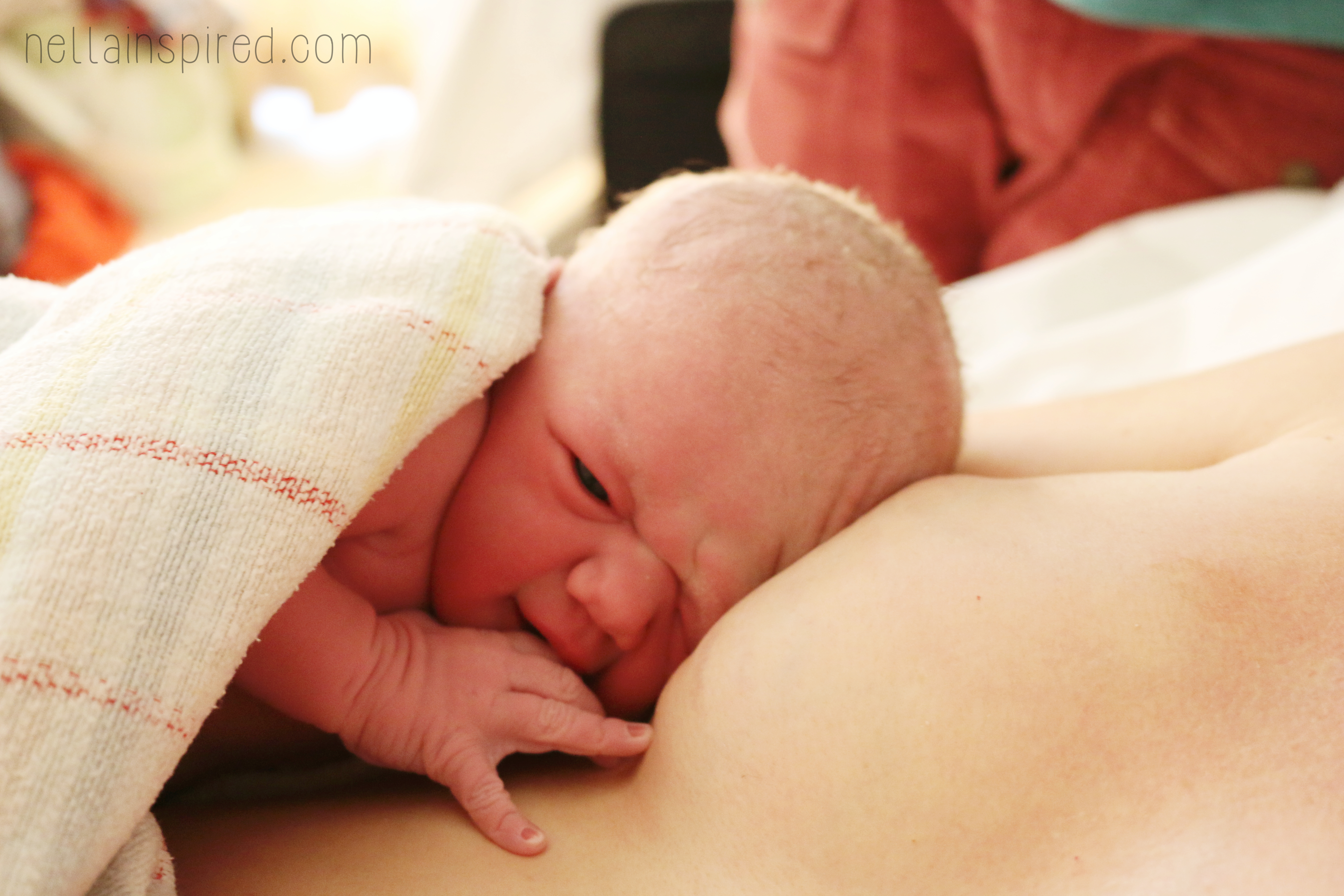 Hypnobirthing advocates breathing the baby down so I was surprised to feel that insane all encompassing urge to push with Boston, and pushed I did. Boz flew out in one, so I wanted to make a real effort this time around to take it a little slower. They call it the Natural Explusive Reflex, that “urge to push”. For those who have not given birth or did so with an epidural it sort of feels like (sorry to gross you out) that uncontrollable response that happens when you vomit…yup…only it goes down not up and its more intense. So technically you don’t have to try to push, your body just does it. So I concentrated on relaxing my muscles as much as possible and letting that uncontrollable reflex just happen. It was pretty cool (she calmly types after grunting like a gorilla at the time).